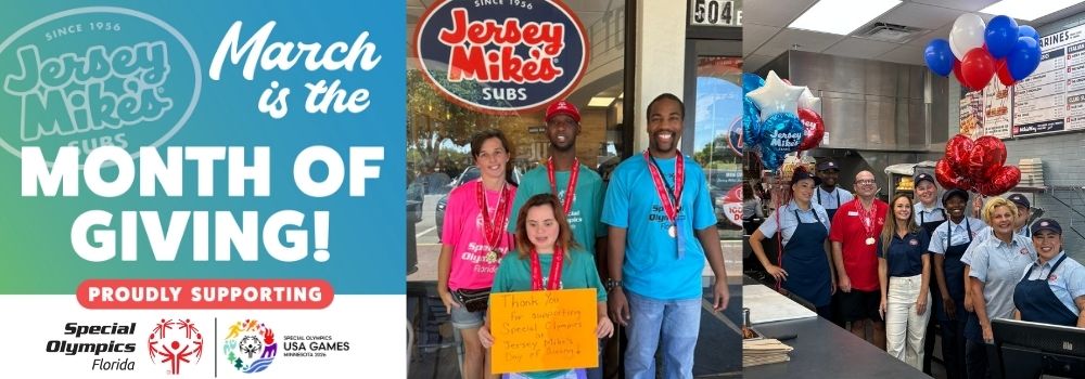 The Month of Giving campaign will culminate with Jersey Mike’s Subs “Day of Giving” on Wednesday, March 25, when Jersey Mike’s restaurants will give 100 percent of the day’s sales – not just profit – to benefit the 2026 Special Olympics USA Games, Special Olympics Florida, Team Florida (our 250-member delegation to the 2026 USA Games), and other Special Olympics state programs across the country.